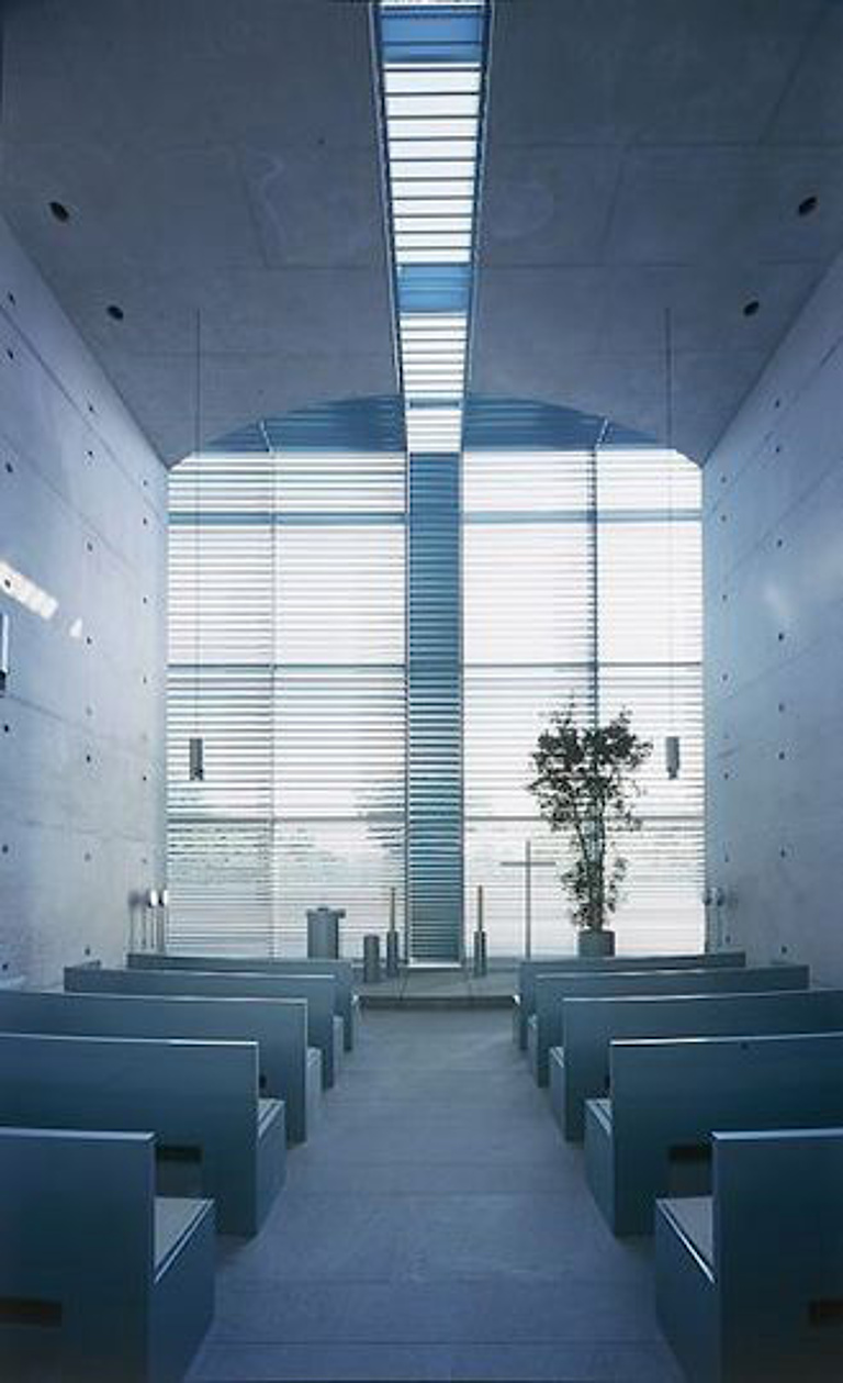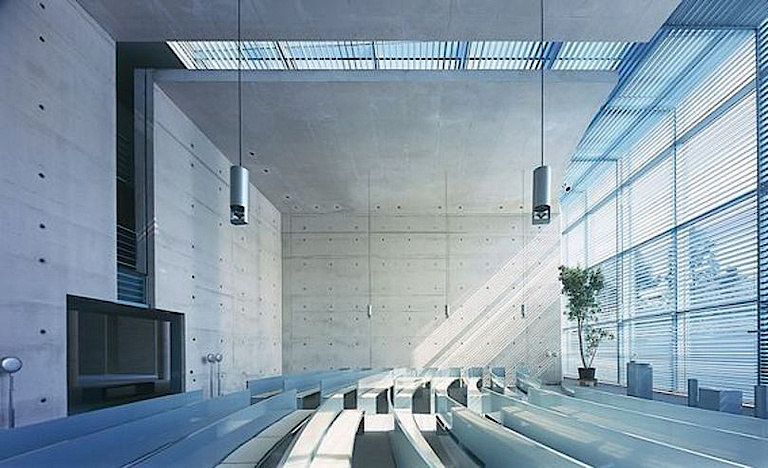 Die Säulenhalle mit 29 Rundstützen, »Lichtkapitellen« und sternartigen Deckenstrahlern symbolisiert das Universum – die Zeitlosigkeit, Himmel und Erde, vergleichbar mit der römischen Tempelarchitektur. Zusammen mit anderen, auch ägyptischen Motiven wird der kontemplative Ort ritualisiert. Alle technischen Gegenstände sind unsichtbar im Untergeschoss installiert.
